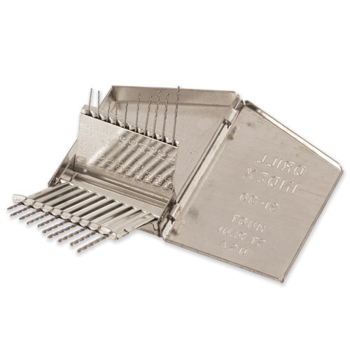 Tiny size, 20-piece high speed steel drill bit set in numerical sizes #61-#80 in a plastic index.