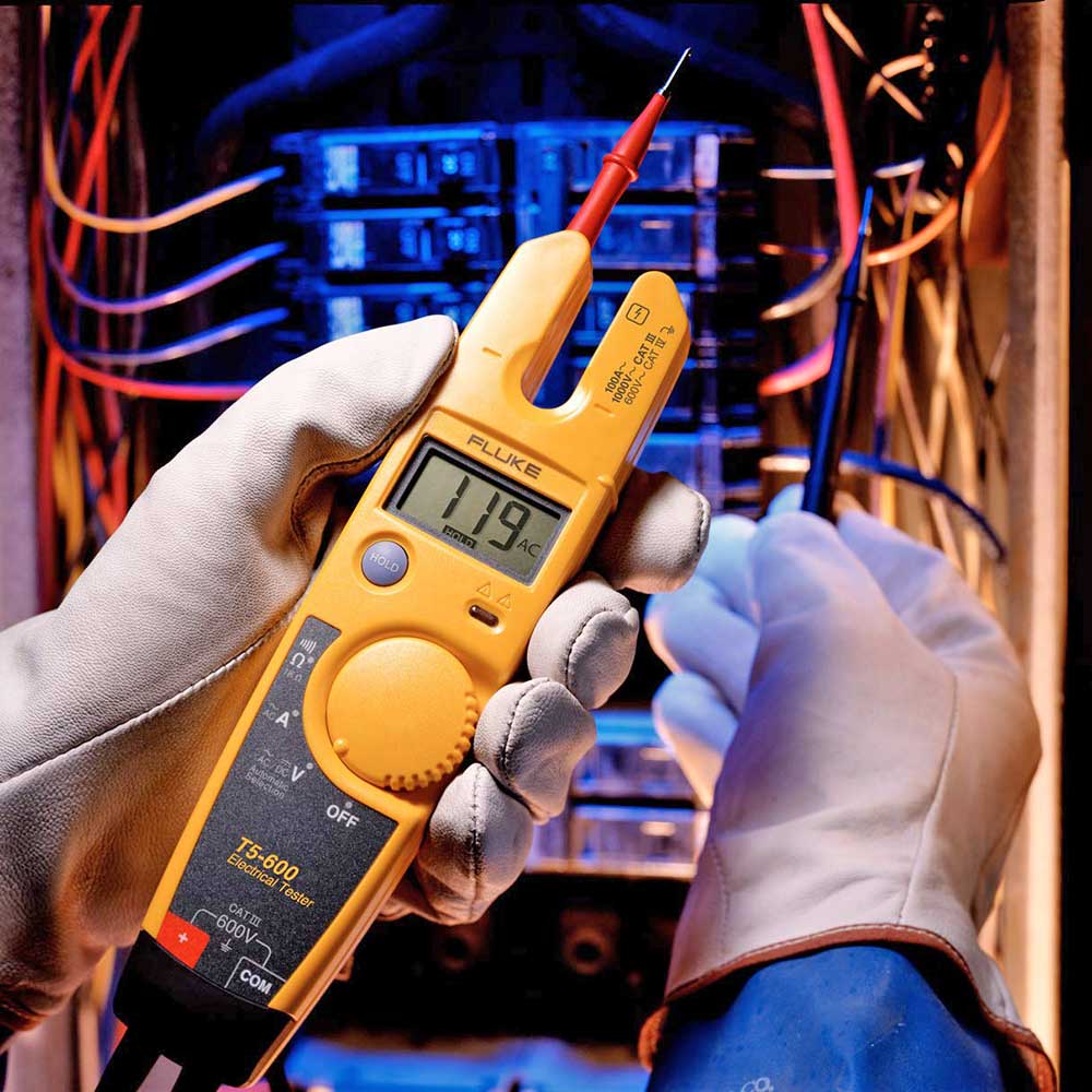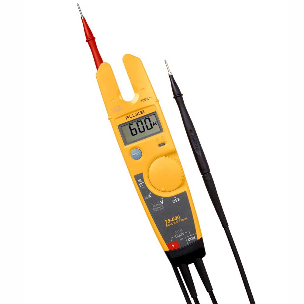 The Fluke T5-600 600V Voltage Continuity and Current Tester lets you check voltage, continuity and current with one compact tool.