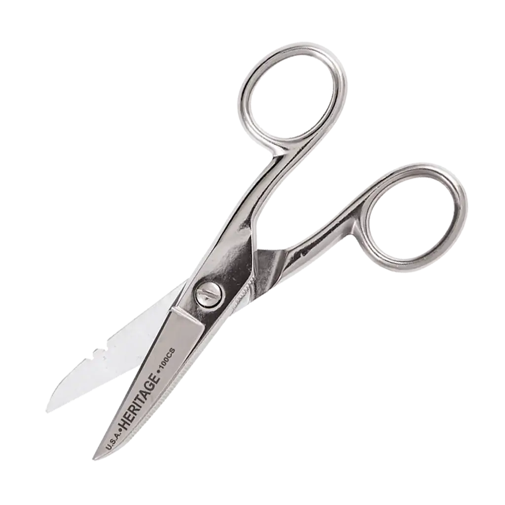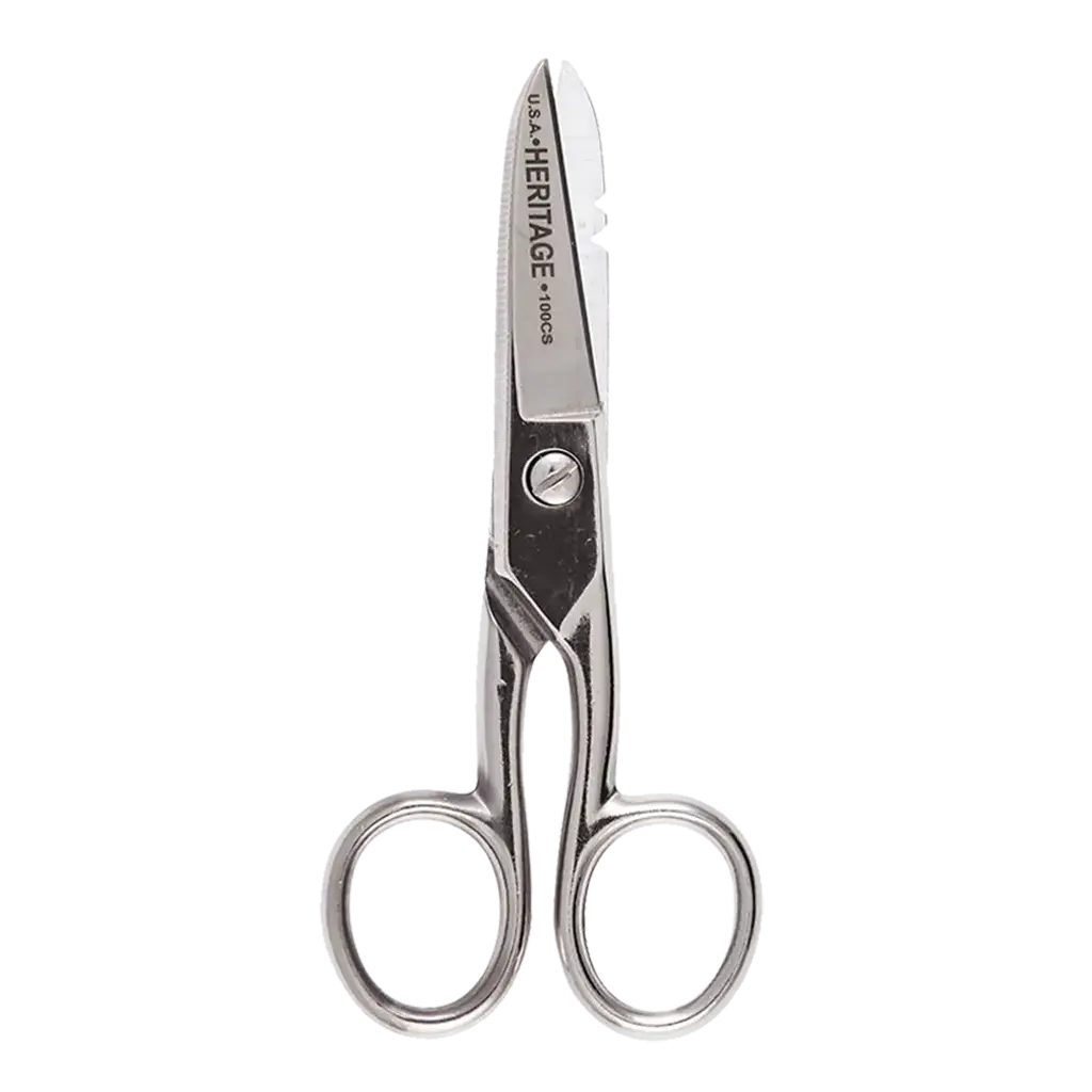 Forged of cutlery steel, double plated, multi-purpose Electrician/’s Scissor for medium gauge wires, insulation materials, and harness ties.