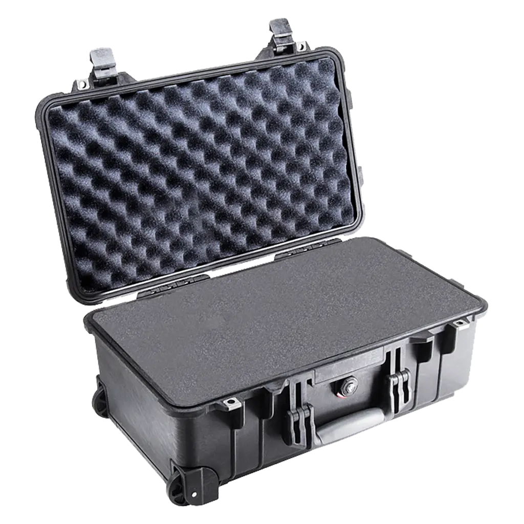 The Pelican 1510 Protector Case provides military-grade protection for a wide variety of gear, from camera equipment to camping kits. It is available with foam, without foam, padded dividers, or TrekPak dividers. The Pelican 1510 Protector Case is the maximum airline carry-on size, so you can travel with your sensitive gear close at hand.