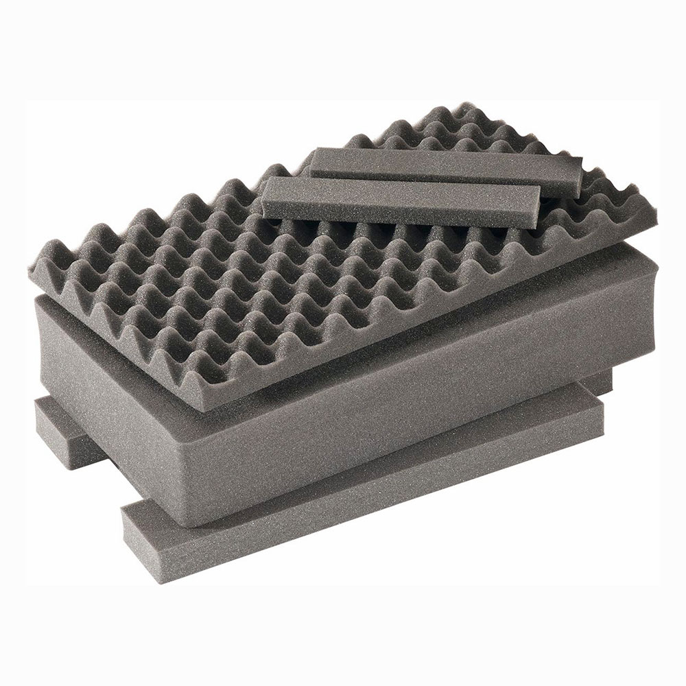 The foam set is an easy do-it-yourself system for customizing the interior of your case. Layers of foam are pre-scored in tiny cubes. Simply lay your equipment on the foam, tape or chalk to mark the foam, and pluck away. Always allow at least one inch of foam between your equipment and the wall of the case.